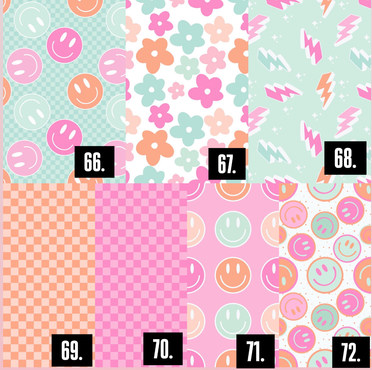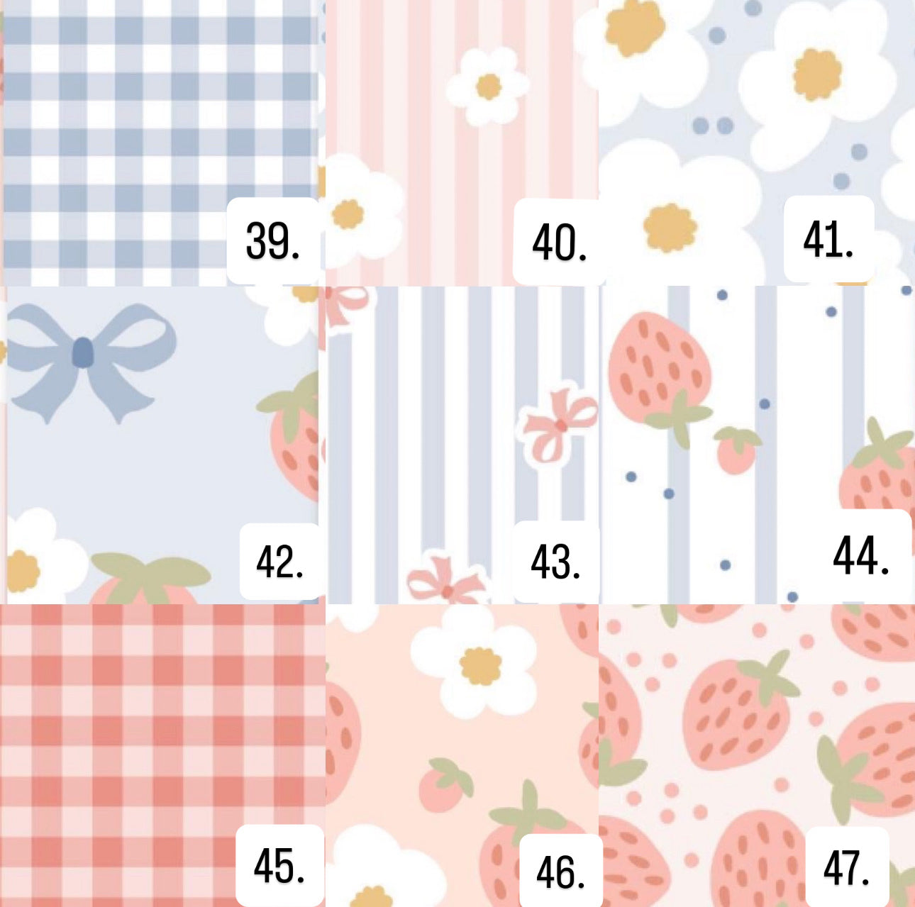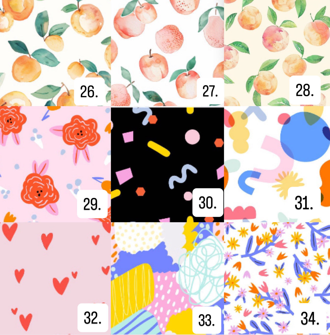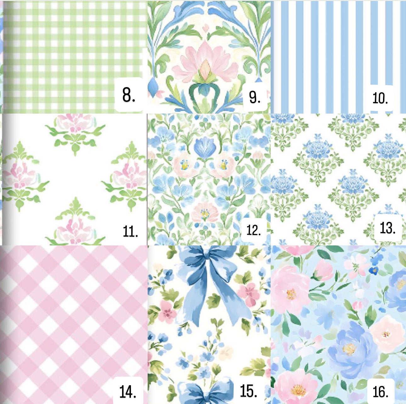 Example order notes: Annie (only capital A) background design #4 font color navy blue font style M. Design 1